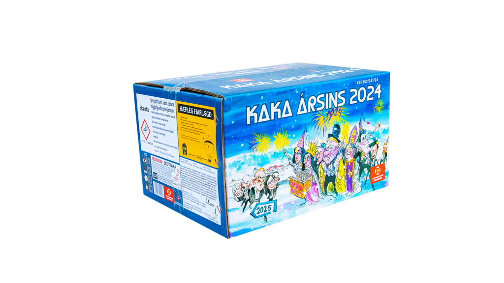 | Kaka ársins 2024 er dúndur. Nýr forseti, ný ríkisstjórn og bullandi 88 skota partí sem nær allri athygli hvar sem henni er skotið upp! Stöðug skothrí með ótrúlega fallegu og fjölbreyttu konfekti sem fær alla áhorfendur til að gleyma fortíðinni og horfa til nýs árs. - Kveðjum gamla árið með stæl. 88 skota / 45 ske / 14 kg |