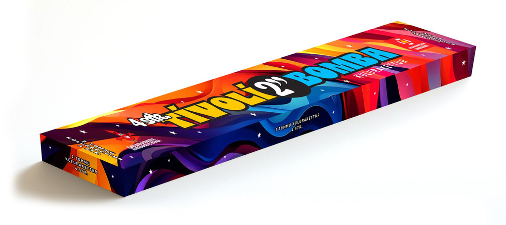 Fjórar 2¨ rakettur saman í pakka með miðsmunandi effectum